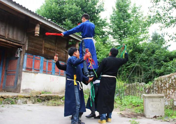 “鈴鐺舞”主要流傳在烏蒙山區(qū)的彝族聚居區(qū)。彝語稱“懇合唄”?!皯┖稀?,指祭祀禮儀中唱經(jīng)文的歌,“唄”即跳的意思,又稱“跳腳”、“抄子舞”。合起來就是通過舞蹈表演的形式加上歌師的訴唱來祭奠死者的意思,是彝族先民在祭祀教化活動時按倫理輩分和長次舉行高歌創(chuàng)業(yè)公德的騎馬戰(zhàn)狀舞蹈。
