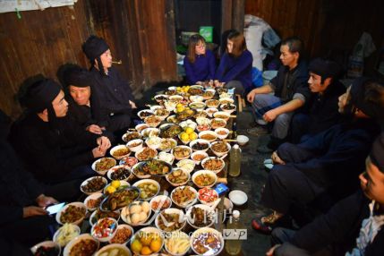 11月16日,新郎家派來(lái)的“關(guān)親客”在與新娘家的親戚喝酒對(duì)歌。