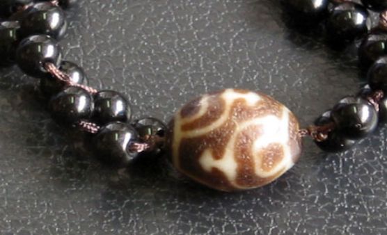 藏族同胞過去認為,九眼石天珠的內(nèi)部結(jié)構(gòu)具有天然宇宙強烈的磁場能量,造成天珠有不可思議的感應(yīng)。所以天珠也成了藏族同胞最貴重的護身符,人們相信,誠心供養(yǎng)佩戴天珠可以消除業(yè)障、獲得福報、防止中風及免除被外道邪魔傷害,又可增強體力,增加財富等等。