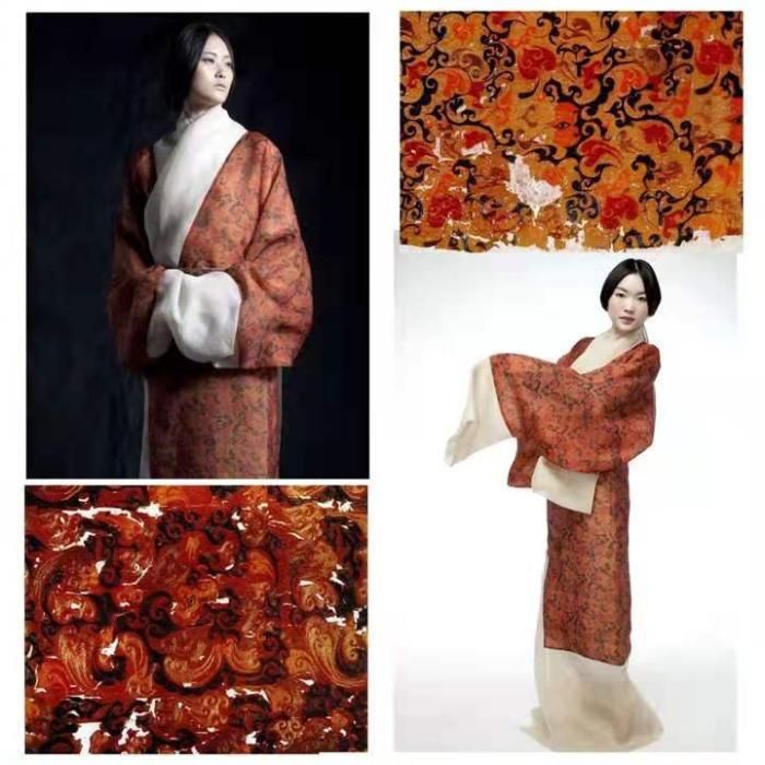 這些文物的精美程度,讓她嘆為觀止。“四經(jīng)絞羅朱砂染,乘云信期長(zhǎng)壽繡,實(shí)在是太美了。但遺憾的是,墓主蠟像所穿的服裝非常簡(jiǎn)陋,我就想,能不能復(fù)原一件馬王堆漢墓的織繡服裝。”