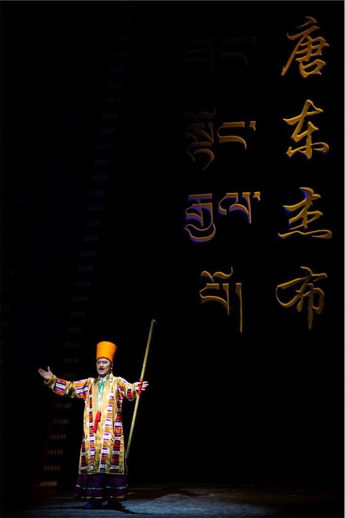 南木特藏戲已有400年的歷史,面對這樣一個彌足珍貴的“中國戲曲活化石”,主創(chuàng)人員對創(chuàng)作主題和表現(xiàn)形式斟酌再三,最后選定以“生命的奉獻(xiàn)”為創(chuàng)作起點,將《唐東杰布》以“老戲新唱”的形式呈現(xiàn)給觀眾。