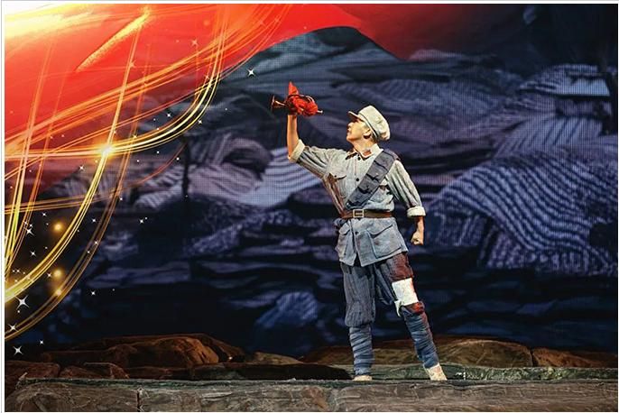 《花兒與號手》是一部以紅軍長征路過六盤山為背景創(chuàng)作的音樂劇,全劇展現(xiàn)了長征路上紅軍戰(zhàn)士的理想信念和“長征是宣言書、是宣傳隊、是播種機”這一核心思想,弘揚了中國共產(chǎn)黨百年征程中展現(xiàn)出的無私無畏的革命精神。