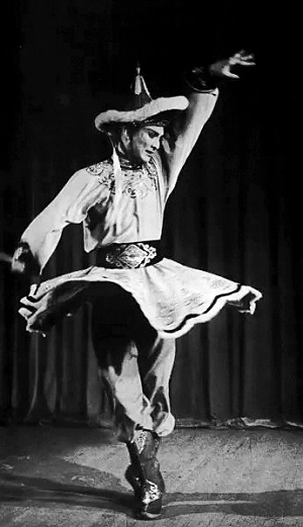 1947年,從張家口開往綏遠的列車上,有個青年目不轉(zhuǎn)睛地凝視著窗外——無邊無際的草原上,一位牧馬的漢子騎術精湛,氣魄勇猛,手中揮舞著套馬桿于馬群中自由穿梭,剽悍而又豪邁。“就是這個感覺!”青年靈光乍現(xiàn)。不久,雄渾激昂的《牧馬舞》在舞蹈界引起轟動,尤其是那策馬揚鞭的動作,節(jié)奏明快剛柔相濟,日后在無數(shù)蒙古舞作品中反復出現(xiàn)。編創(chuàng)這支舞蹈的青年就是著名舞蹈表演藝術家、編導藝術家賈作光。