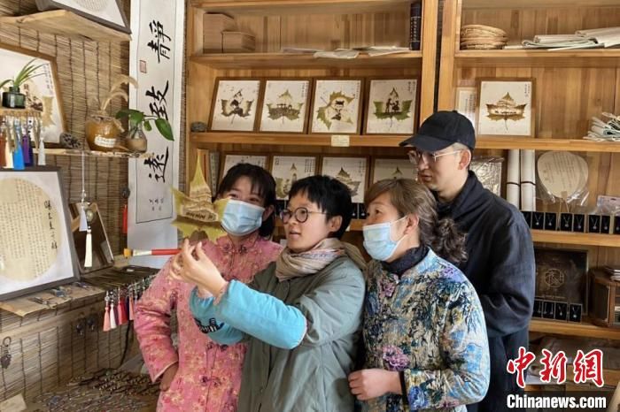 龍玉玉在她的葉雕藝術(shù)館教授葉雕技藝。 受訪者供圖
