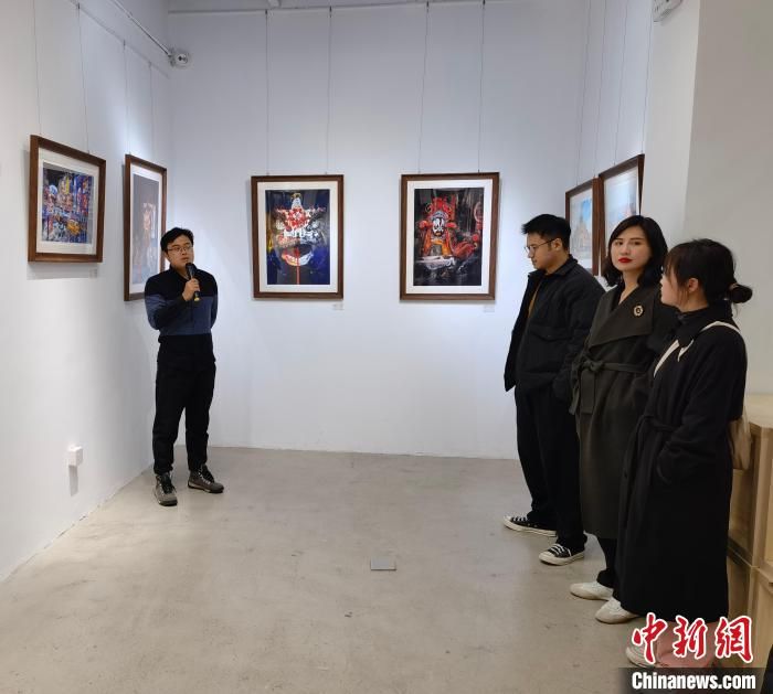 “醒獅、京劇臉譜……”濃厚亮麗的色彩會就的中國傳統(tǒng)民俗風(fēng)貌,當(dāng)晚在霸都書局亮相后,便吸引了很多青年藝術(shù)愛好者觀賞。