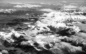 在飛機上俯瞰昆侖山雪景。新華社記者 江文耀攝