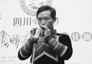 現(xiàn)年41歲的阿西日哈,是四川馬邊彝族自治縣民建鎮(zhèn)燈桿堡村的村民。這位多才多藝的彝族漢子不僅會(huì)吹奏木葉、草葉,而且精通月琴、馬布,還會(huì)吹奏葫蘆絲和笛子,可以稱得上是一位全能樂(lè)器手。令人驚訝的是,這些樂(lè)器幾乎都是阿西日哈自學(xué)的。