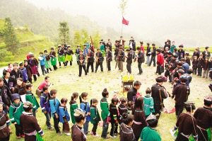 上馬路苗寨的同胞迫切地希望恢復(fù)自己的“招龍節(jié)”,“招回”犀牛龍。祭祀和追思自己的祖先絕不是為了旅游開發(fā),不是為游客作秀,而是為了讓本民族尤其是子孫后代通過節(jié)日的載體,了解自己是誰、從哪里來;通過祭祀和追思自己的祖先,教育子孫后代不忘感恩,尊重和保護祖先留下的綠色生態(tài)環(huán)境,感謝養(yǎng)育他們的山山水水,感謝那口永不枯竭的龍水井和蛙公。