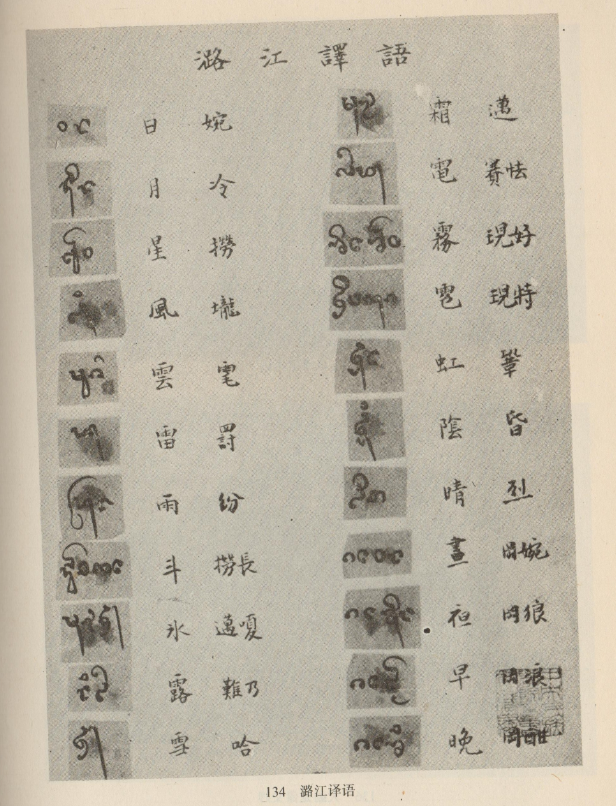 清代華夷譯語之一種,為云南潞江一帶當時流行的傣文。此為原件之修補本。橫寬23厘米,高30厘米,共31頁。這種文字形體以傣哪文為基干,又帶有傣繃文的書寫特點。此修補本現存中央民族學院圖書館。