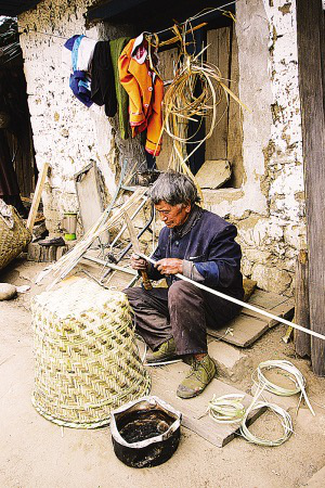 用竹皮編織的各種竹簍器具是珞巴族日常生活中不可缺少的用具