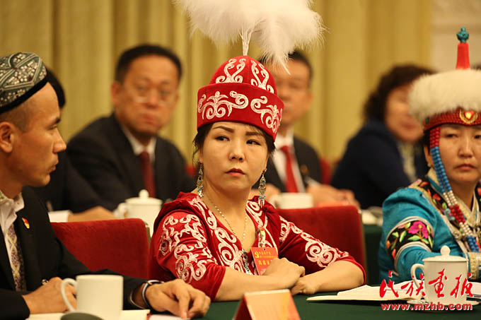 十九大代表、新疆維吾爾自治區(qū)討論會(huì)上古麗孜娜提?吐坎發(fā)言(滕俊 攝影)
