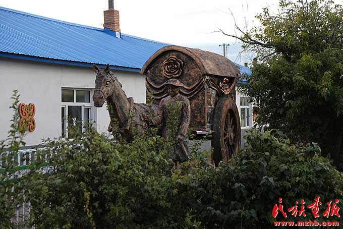 坤河村富有達(dá)斡爾族民族特色的雕塑