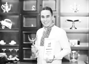 阿不力孜·聶展示獎杯。郭幸福攝