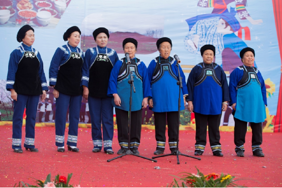 扁坡村“三月三”隨著社會(huì)的進(jìn)步,活動(dòng)的重心逐漸向民族文化等歌舞表演形式轉(zhuǎn)移,但布依族從古至今都是一個(gè)注重農(nóng)耕文明的民族,他們對(duì)于大地的熱愛(ài),無(wú)以言表卻在歌舞中流露著民族的敬仰之情。阿婆們穿著質(zhì)樸的民族服飾,深藍(lán)的衣裙襯得她們莊重又從容,唱著那布依老歌,仿佛家中的老奶奶坐在長(zhǎng)椅上溫柔地向孩子們?cè)V說(shuō)過(guò)去的種種。