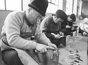 最后一道工藝,在過去算是秘密,現(xiàn)在已經(jīng)眾所周知,就是用油煮、蠟?zāi)サ姆椒ㄊ剐〉豆饬?,不生銹。