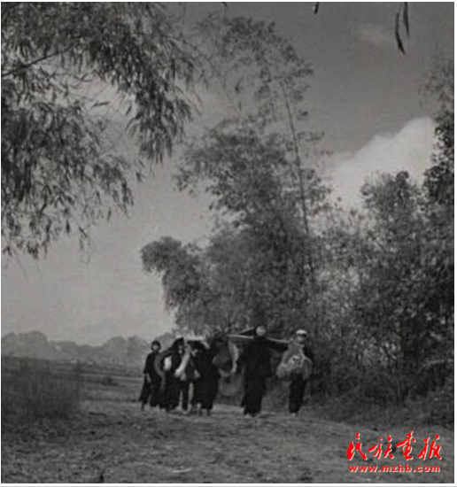 壯族青年男女們帶著口糧成群結(jié)隊(duì)地前來(lái)參加歌圩
