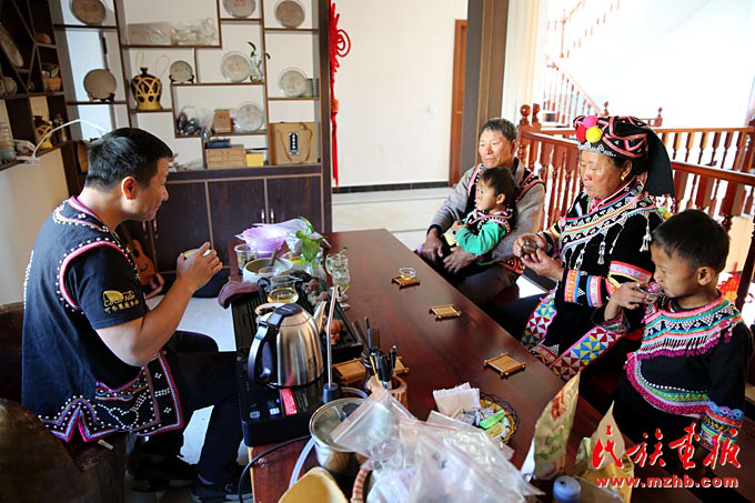 一家人坐在6米高的客廳里看著高清電視節(jié)目,偶爾圍坐在一起品味著來自景邁山的古樹茶,張俊波的臉上滿是幸福。他說:“拉祜族是快樂民族,我們喜歡用歌聲和舞蹈表達(dá)快樂的心情。這種發(fā)自內(nèi)心、難以言表的快樂是黨和國家長期關(guān)懷我們西南邊疆少數(shù)民族才能實(shí)現(xiàn)的。”