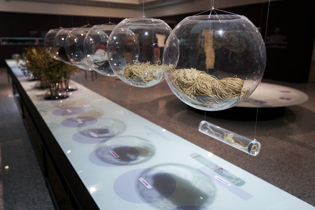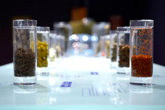 展覽還用特別的篇幅呈現(xiàn)了民族服飾對(duì)天然材質(zhì)的取用。天然,這種被視為極致的現(xiàn)代奢華,只不過(guò)是傳統(tǒng)社會(huì)中人類(lèi)曾經(jīng)習(xí)以為常的日常生活狀態(tài)。那些在當(dāng)代被念念不忘、不斷回歸的傳統(tǒng)工藝表明,傳統(tǒng)依然活著,并且具有強(qiáng)大的生命力。