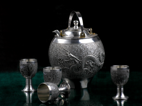 一、錫工藝屬于傳統(tǒng)金屬工藝美術(shù)技藝,工藝主要包括采坯、碾坯、放樣下料、扳金成型、手工拋光、焊接、手工雕刻、鏨花等全手工制作。產(chǎn)品主要為裝飾藝術(shù)品件類和實用藝術(shù)品件類,如:錫畫、藝術(shù)掛件、藝術(shù)擺件等裝飾藝術(shù)品,茶具、酒具、飾盒等實用藝術(shù)品。
