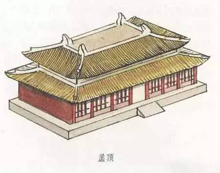 盝頂,是一種較為特別的屋頂形式。這種屋頂形式是在屋頂上有四條與屋檐平行的屋脊,四條屋脊構成一個長方形或正方形的平頂,其四角各有一條垂脊向下斜伸,共形成四塊坡檐。盝頂這種頂式在古代大型宮殿建筑中極為少見。
