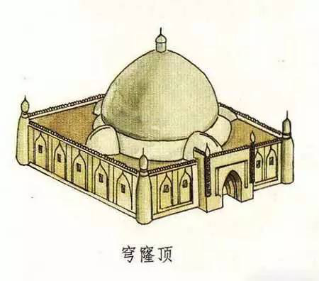 穹窿本身指天空,也形容如天空般中間高、四周下垂的樣子,同時也泛指高成拱形的建筑形式。穹窿頂就是穹窿式的屋頂,一般從外觀來看為球形或多邊形的屋頂形式。如,伊斯蘭教清真寺中的天房,室內頂部呈半圓形,就可以叫做穹窿頂。此外,蒙古族的蒙古包等圓頂的民居,也可以歸為穹窿頂建筑一類。因此,穹窿頂也稱圓頂。