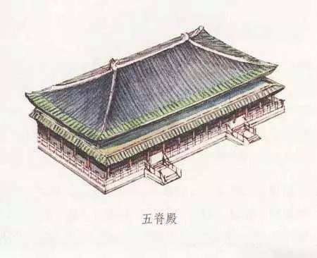 廡殿和歇山一樣是清式說法,在此之前它又有五脊殿等名稱。因為廡殿式屋頂上共有五條脊,即,一條正脊和四條垂脊,所以稱為五脊殿。