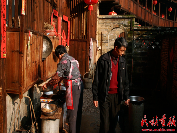 承啟樓所在的地區(qū)位于福建邊遠山區(qū),農(nóng)田不多,除了水稻,山上的柿子樹和茶樹是這里的主要農(nóng)作物。以往,農(nóng)閑時節(jié),土樓里的人家主要是互相串門、喝茶、打牌,一派寧靜、閑適的農(nóng)家生活景象。