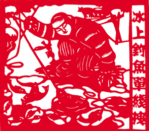 滿族風(fēng)情剪紙《冰上釣魚單線拽》