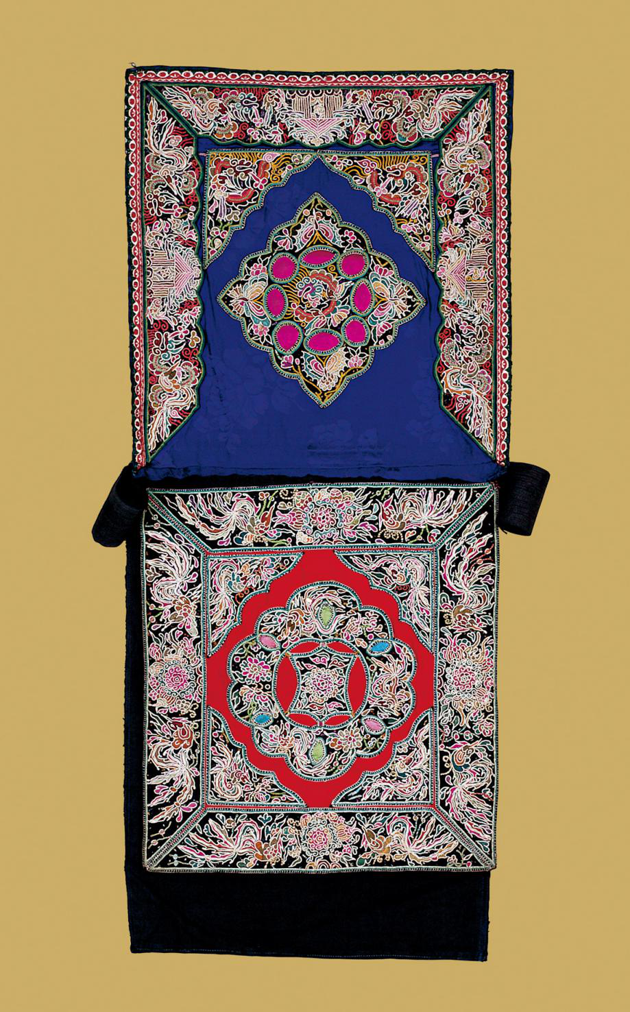 侗繡是侗族婦女最擅長的工藝,它是農耕文化的產物。侗族刺繡已被列為少數(shù)民族優(yōu)秀文化遺產,并且已經逐漸走上產業(yè)化的道路。在侗族服裝中有許許多多的刺繡,它們出現(xiàn)在不同的部位,樣式、顏色也各不相同。除了服裝,刺繡在頭巾、嬰兒背帶、婦女胸兜、布花鞋、鞋墊、煙袋、挎包等也十分普遍。一件刺繡作品的完成,首先要把構想或需要的圖案以剪紙的形式呈現(xiàn)出來,其次將剪紙貼在布條上,布條只有綠色、紅色和黃色。刺繡時,左手固定布條,右手自如地上下穿針。刺繡的顏色也基本上以紅色、綠色和藍色為主,十分貼近大自然。繡品不僅具有極高的裝飾價值,其反復繡綴的工藝還能增加衣物的耐用度。在侗繡中最出名的要數(shù)平秋侗繡。其發(fā)源于九寨,集紡織、印染、剪紙、刺繡于一體。這種繡種僅在錦屏縣平秋鎮(zhèn)及周邊的侗族群體中世代相傳。