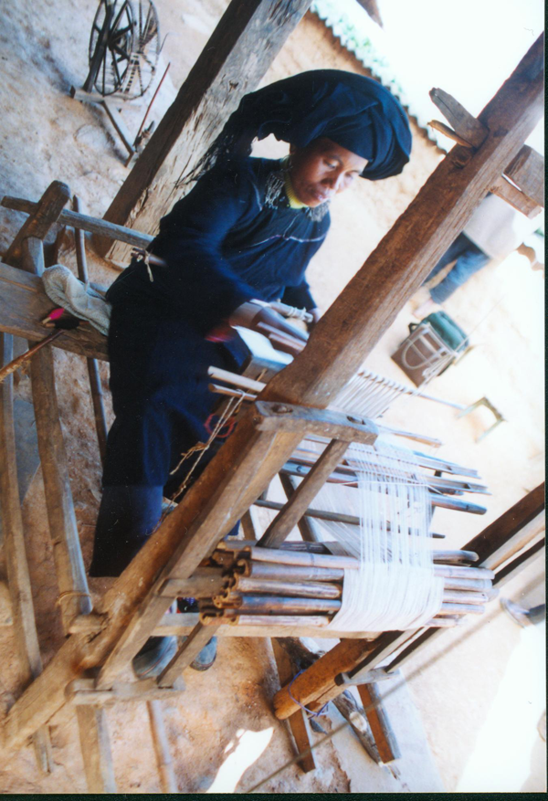 ?。?)紡織。布朗族婦女善于紡織,多在閑暇時間進行。紡織原料有棉花、苧麻和葛線麻等數(shù)種,以紡織棉布為主。這些布用來縫制上衣、筒裙、背帶、布袋、裹腳布等。紡織品種有斜紋布、平布和彩錦。布的質(zhì)地厚實耐穿,深受本族人喜愛。有的地區(qū),人們多半使用水平織機,紡織技術(shù)更進了一步。近十年來,由于價廉物美、品種齊全的化纖紡織品大量銷售,傳統(tǒng)的紡織技術(shù)受到了沖擊,一些布朗族婦女已經(jīng)不紡紗織布。