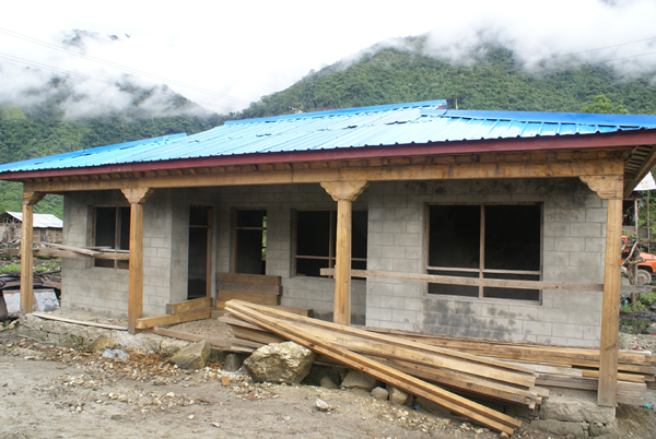住宅一般是3層(也有4或5層的),向著陽(yáng)光,錯(cuò)落有致,庭院寬敞而大方,便于活動(dòng)和飼養(yǎng)家畜。房屋下層叫“薩容”,意為關(guān)牲畜的“圈”;上層叫做“徬”,用來(lái)存放青稞、蕎麥及其他雜物;中層叫作“米蘇麥”,是住人的居室,臥室內(nèi)多用木板相隔里外兩間,里間一般為倉(cāng)庫(kù),有門(mén)窗;外間面積很大,靠墻的中間臨近窗子下方,設(shè)有火塘,火塘是做飯、待客、聚會(huì)的核心場(chǎng)所,具有神圣地位。門(mén)一般朝東、南方向開(kāi),門(mén)前設(shè)有用木桿鋪搭的涼臺(tái),用石砌或木板做的階梯與樓下相通。房架為石木結(jié)構(gòu),梁、檁、椽之間搭接處均用竹篾條捆綁,很少用鐵釘。