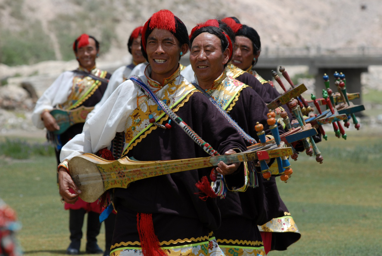 “扎木聶”又叫六弦琴,藏語“扎”是聲音,“聶”為悅耳好聽之意,“扎木聶”意為美妙悅耳的聲音,藏族傳統(tǒng)的彈撥樂器。主要流傳于拉薩、山南、阿里、拉孜(巴諧)、薩迦 、昂仁、定日等地。扎木聶是民間歌舞堆諧、囊瑪和札木聶彈唱的主要伴奏樂器,亦可用于日常生活中的自娛自樂。扎木聶彈唱廣泛流傳于青藏高原,是青海藏族聚居區(qū)影響較大,流傳久遠(yuǎn)的彈唱藝術(shù)。扎木聶也廣泛流行于西藏自治區(qū)、四川、云南、青海、甘肅等地。