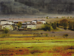 許海剛認為,水彩畫的誕生是為了戶外寫生的方便,因此,風景寫生極為重要。幾十年來,他每年都會帶著學生外出寫生,從東北的伊春到海南的三亞,從南疆的塔什庫爾干到福建的崇城,流連于高山大海、小橋流水之間。他最喜愛的,是西部民族地區(qū)的風景,不但氣象開闊,變化多姿,而且人煙稀少,特別適宜入畫。