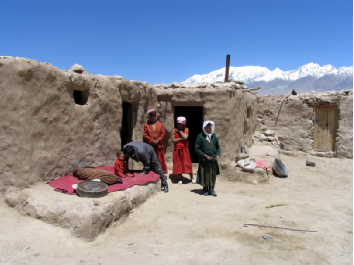塔吉克族的房屋一般為土木結(jié)構(gòu)正方形的平屋頂,塔吉克語叫做“藍蓋力”。塔吉克族的房屋雖然沒有窗戶,但屋頂中央都會開有天窗。