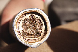 我在曼谷一家有40年歷史的佛像店“佛光工藝社”采訪時問到老專家這樣一個問題:泰國現(xiàn)在大概有多少種圖案的帕肯?所有聽到這個問題的人都是一聲驚嘆,然后笑說:“無數(shù)!”我非要問出個數(shù)來,他們便告訴我,泰國是一個歷史劃分復(fù)雜、族源廣博的國家,因此其包容性很強(qiáng),雖然九成以上的人信仰佛教,但是婆羅門教、道教、伊斯蘭教、基督教等在泰國都被接納,還有本土的一些法術(shù)也不曾被丟棄。所以,每天每個來定做的人都會有不同材質(zhì)的要求,不同圖像、符咒的組合,僅一個工藝社40年來就已經(jīng)做過幾十萬種的圖案組合。我收藏的擦擦有不同年代、不同材質(zhì)、不同價值的,除去年代久遠(yuǎn)的,頗有價值的就是一個藥擦,那是一個大威德金剛擦,專家說從被剝落的剖面看,里面有藥材的成分。我知道,在西藏,擦擦因材質(zhì)和制作人不同而有很大的區(qū)別。擦擦中最為稀有難求的一種叫“布擦”,那是寺廟僧人在保存活佛法體的時候,將那些浸透活佛法身血水的鹽巴或其它藥物和泥土融合后制成的。另一種較為珍貴的擦擦是活佛的骨灰與泥土摻混在一起制作而成的。還有一種藥物擦擦,是用不同的名貴藥材如珍珠、瑪瑙、藏紅花等藏藥合成制作,可服用治病。最普通的擦擦用一般的泥土制作,好一點(diǎn)的有膠泥、陶土、白泥等,這種擦擦成本低廉,在民間流傳最廣。