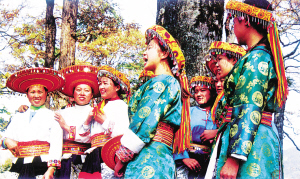 這是一個(gè)特別愛(ài)美的民族。男人們著裝瀟灑隨意,頭纏黑白相間的方格頭帕,倍顯英俊。女人們則身穿黛藍(lán)色對(duì)襟長(zhǎng)衫,鑲著的紅布邊和紅布扣純?yōu)檠b飾。下著素艷相融的花裹裙,腰纏五顏六色的腰帶,頭上再配一個(gè)后面吊有長(zhǎng)長(zhǎng)彩須、狀似倒扣斗篷的火紅頭巾,把個(gè)茫茫綠野點(diǎn)綴得山花爛漫、如畫如詩(shī)。
