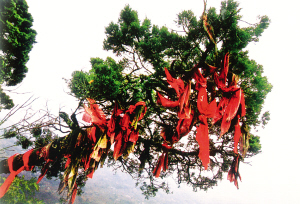 花瑤同胞祖祖輩輩與寨子里的古樹(shù)久久相依。在他們心中,有著頑強(qiáng)生命力的老樹(shù)飽吸天地之靈氣,百年不腐,千年不朽,早已是神,時(shí)時(shí)都在庇佑他們。故對(duì)之倍加敬仰,又十分親近,誰(shuí)都不會(huì)貿(mào)然去傷害它們。即便是蟲(chóng)蛀樹(shù)空枯朽倒地,也不敢拖回家用,而是讓其自生自滅,還原于土。