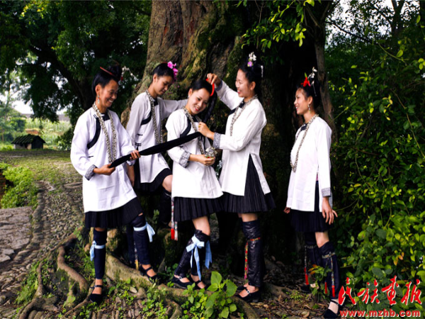 夏天,侗族婦女脫下藍黑色的亮布上衣,換上涼爽的白衫