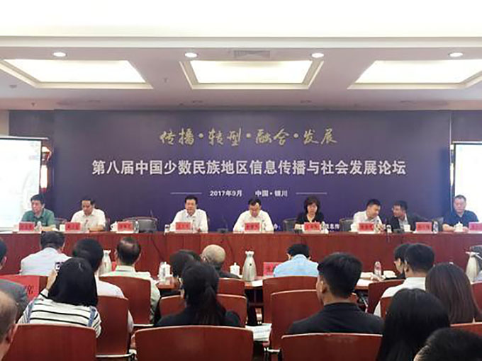 2017年9月16日,由中國少數(shù)民族地區(qū)信息傳播與社會發(fā)展論壇組委會、中國人民大學新聞傳播學院、寧夏大學新聞傳播學院聯(lián)合主辦,銀川市傳媒集團協(xié)辦的第八屆少數(shù)民族地區(qū)信息傳播與社會發(fā)展論壇在寧夏銀川舉行。來自全國42所高校的130多名專家、學者齊聚銀川,圍繞少數(shù)民族地區(qū)信息傳播與社會發(fā)展問題進行交流研討。