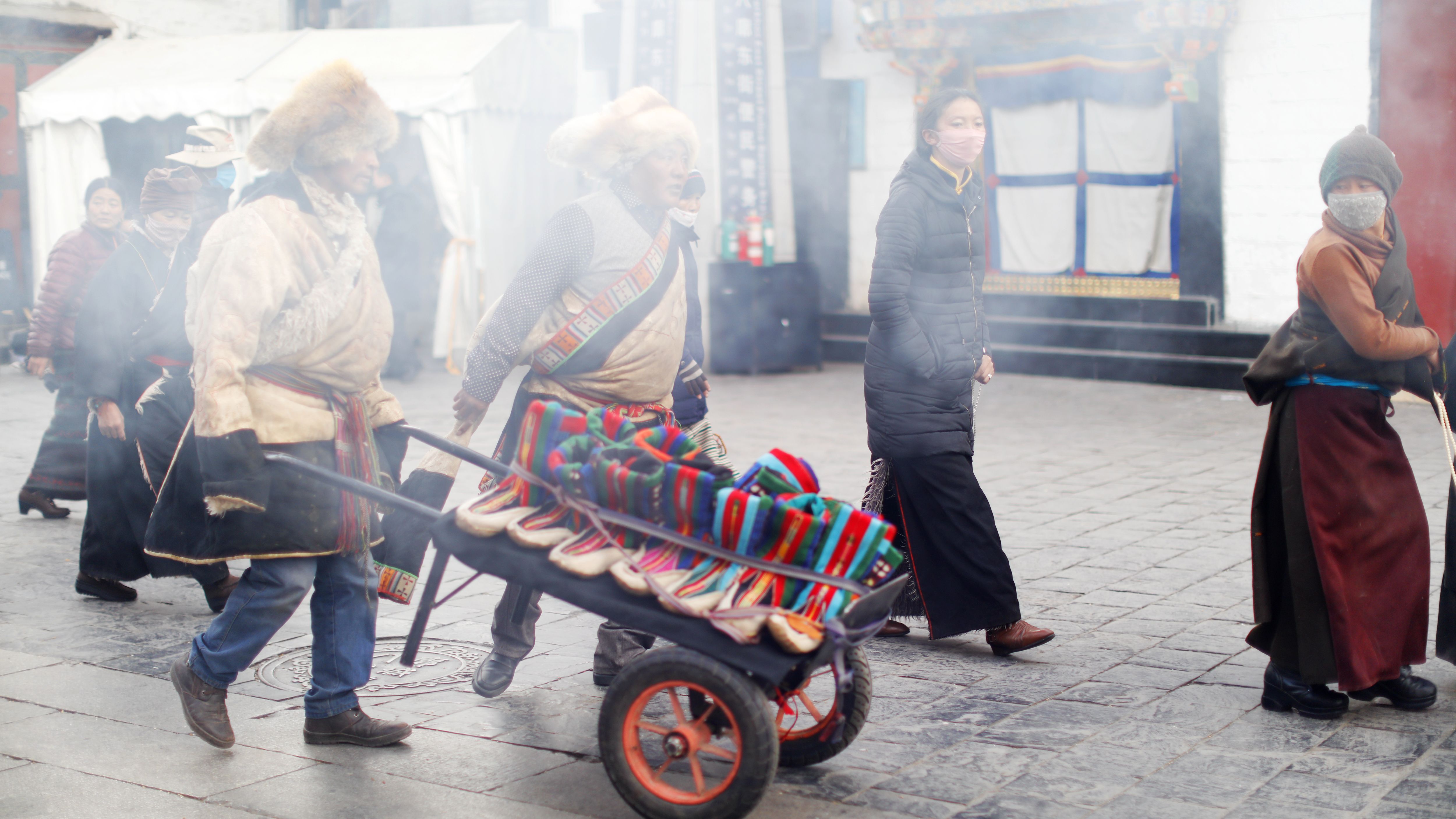 圖片說明:在拉薩賣傳統(tǒng)牧靴