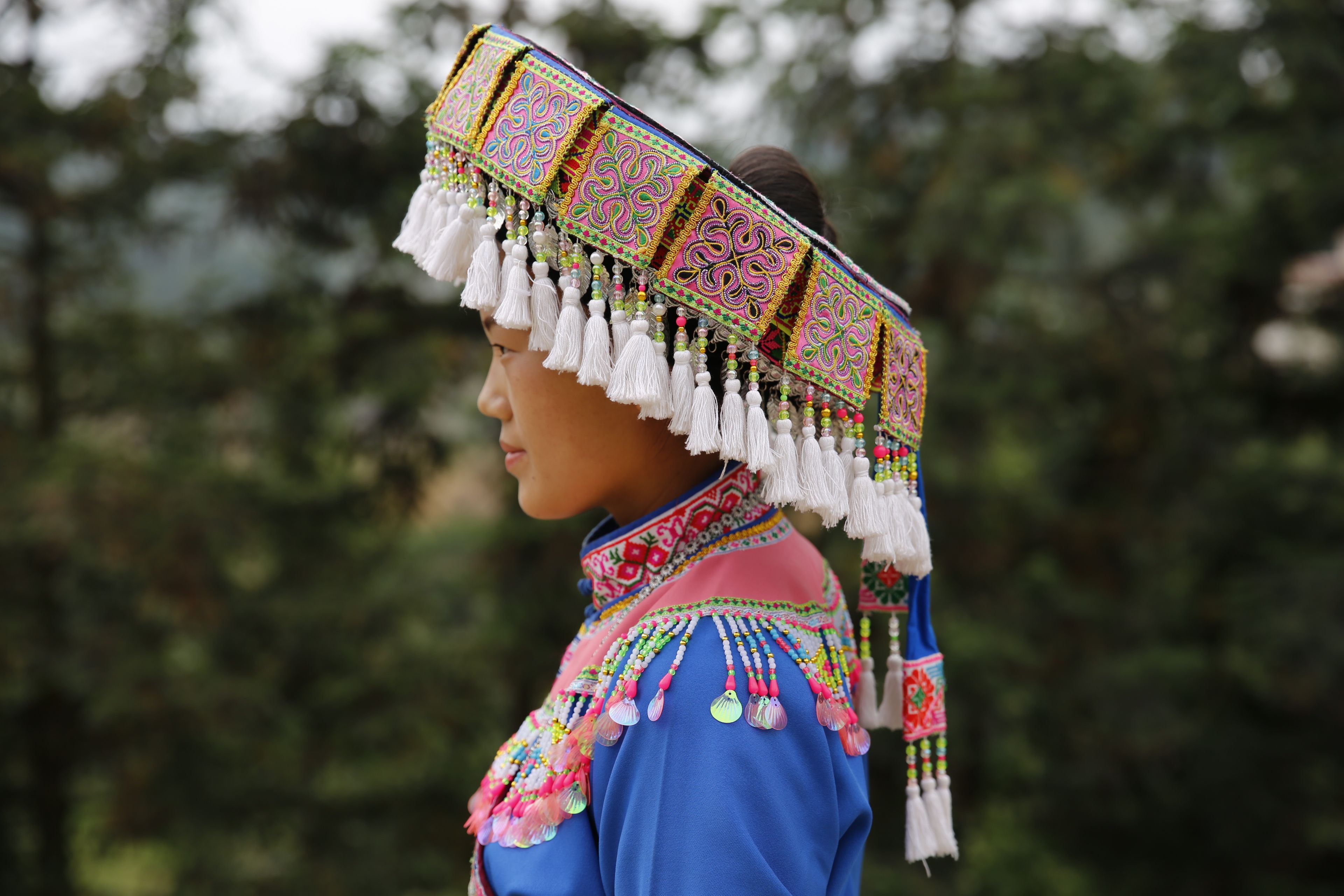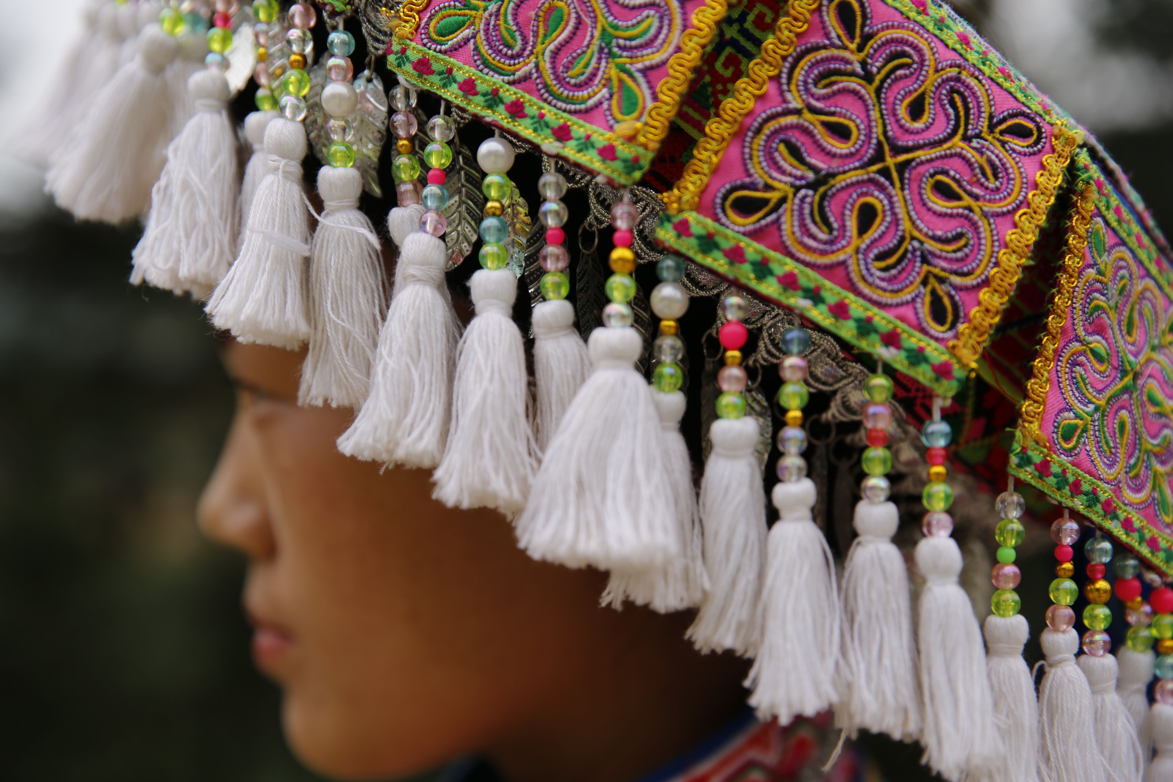 苗族女子服飾花帽-側(cè)面繡花及裝飾1