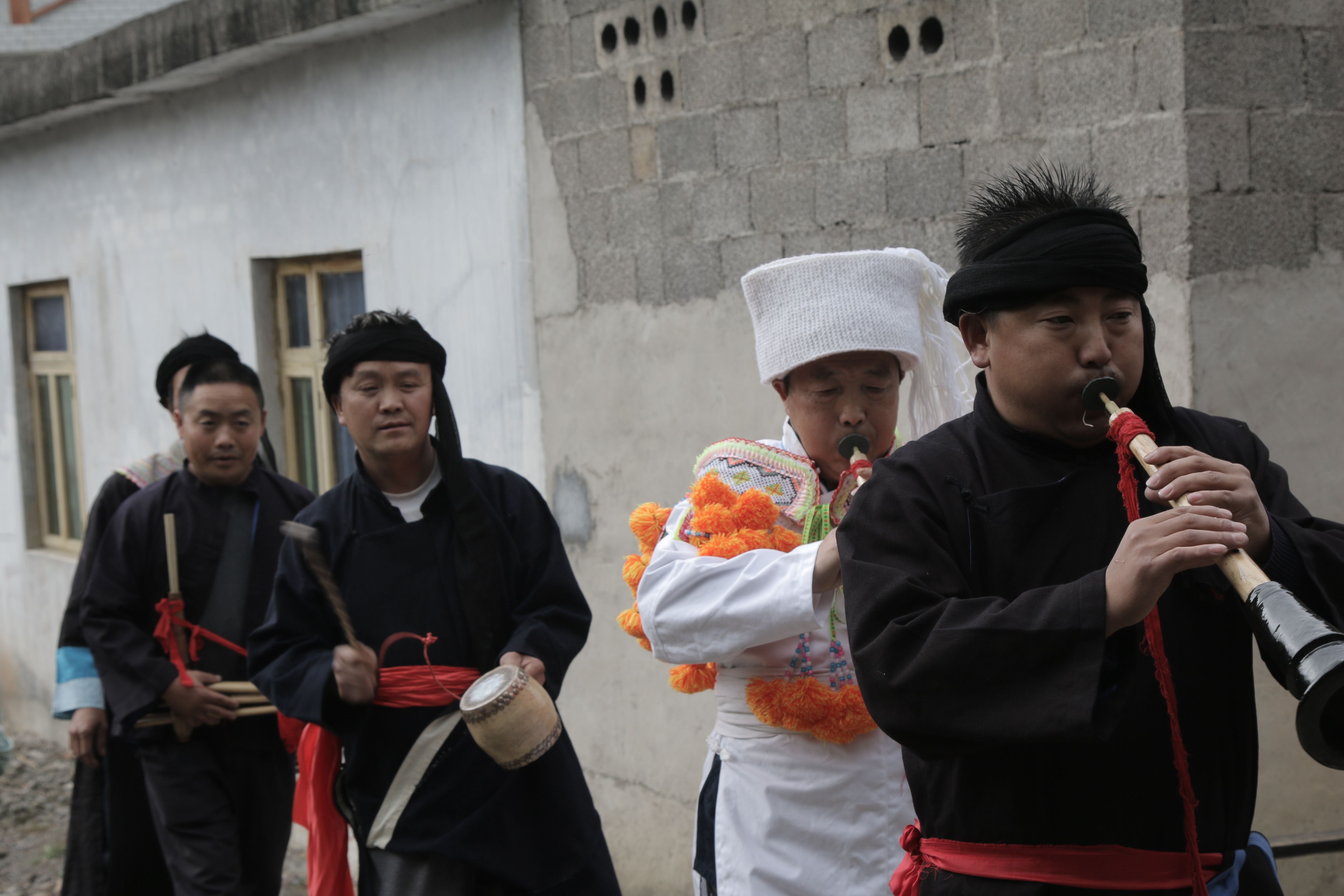 圖片說明:貴州貴陽苗族婚嫁接親隊伍