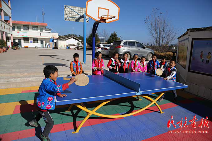 課間休息,臘灣民族小學學生在打乒乓球