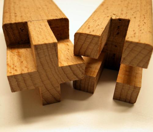 另一類是作為“點”的結(jié)構(gòu)方法。主要用于作橫豎材丁字結(jié)合,成角結(jié)合,交叉結(jié)合,以及直材和弧形材的伸延接合。如“格肩榫”、“雙榫”、“雙夾榫”、“勾掛榫”、“鍥釘榫”、“半榫”、“通榫”等等。