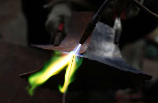 景泰藍(lán)的制作的第一步,就是制胎。這是將不同規(guī)格型號(hào)的紫銅,根據(jù)設(shè)計(jì)圖的要求裁剪出不同形狀,或是扇形,或?yàn)閳A形,再用鐵錘把它敲打成瓶、盤(pán)、碗、罐等各種形狀的銅胎。粗看那些已經(jīng)制作成型的銅胎,顏色樸素,其貌不揚(yáng),似以一種平和淡然的心態(tài),等待著即將到來(lái)的明麗璀璨。