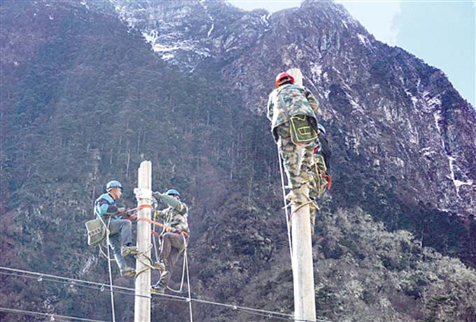 2018年初,隆子縣玉麥鄉(xiāng)電力線路全線貫通,9戶32位群眾將用上國(guó)家電網(wǎng)源源不斷的電能。圖為工人在玉麥鄉(xiāng)境內(nèi)施工(和訊新聞)