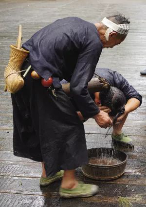 岜沙苗族男子的鐮刀簍