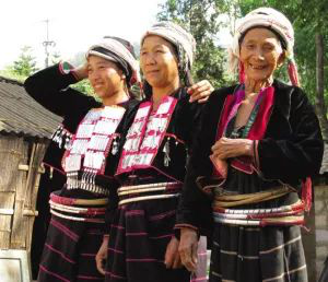 另有一個(gè)傳說(shuō)則是這樣的:德昂族先民從葫蘆中來(lái),女人們一出來(lái)就飛上了天,男人們?yōu)榱怂┳∨?,就用藤篾做成了腰箍,套在女人的身上。從此女人不再滿天飛,安安心心地同男人建立家庭,過(guò)上美滿生活。
