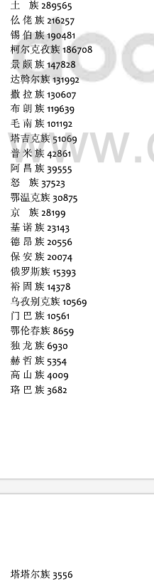 本規(guī)劃所稱的人口較少民族是指全國總?cè)丝谠?0萬人以下的28個(gè)民族。這些民族是:珞巴族、高山族、赫哲族、塔塔爾族、獨(dú)龍族、鄂倫春族、門巴族、烏孜別克族、裕固族、俄羅斯族、保安族、德昂族、基諾族、京族、怒族、鄂溫克族、普米族、阿昌族、塔吉克族、布朗族、撒拉族、毛南族、景頗族、達(dá)斡爾族、柯爾克孜族、錫伯族、仫佬族、土族。