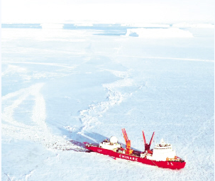 “雪龍”號(hào)是中國(guó)最大的極地考察船,也是中國(guó)唯一能在極地破冰前行的船只。“雪龍”船耐寒,能以1.5節(jié)航速連續(xù)沖破1.2米厚的冰層(含0.2米雪)。簡(jiǎn)單來(lái)說(shuō),“雪龍”號(hào)船底有許多密封艙,破冰時(shí)先把后部的密封艙用幾千噸的海水灌滿;這樣船頭自然翹起,壓騎至冰面之上;然后再把前部的密封艙灌滿海水,后部的海水排出,利用船體前部的巨大壓強(qiáng),把堅(jiān)冰壓裂破開(kāi)。